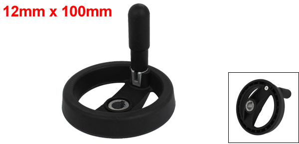 Product Name Hand Wheel Center Bore Diameter (Approx.) 12mm / 0.47" Wheel Diameter (Approx.) 100mm / 4" Revolving Handle Size 56 x 19mm / 2.2" x 0.87" (H*D) Wheel Height(Approx.) 35mm /1.4" Material Plastic, Metal Color Black Net Weight 132g Package Content 1 x Hand Wheel - Reviews