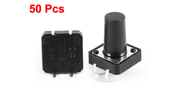 Product Name Tact Switch Type SPST Contact Type Momentary Contact Dimension 12 x 12 x 15mm / 0.47" x 0.47" x 0.6" (L*W*H) Overall Height 18mm / 0.7" Pin Pitch 13 x 4mm / 0.51" x 0.16" (L*W) Pin Length 4.5mm/0.18" Material Plastic, Metal, Electric Parts Color Black, Silver Tone Net Weight 57g Package Content 50(±2%) x Tact Switch - Reviews