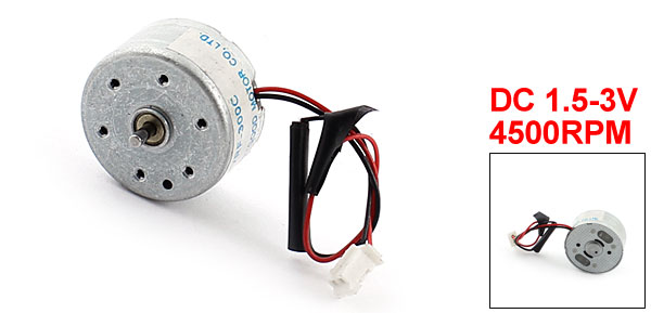 Main Color Silver Tone Brand DMiotech Net Weight 24g Speed 4500RPM Country of Manufacture CHINA Package Content 1 x DC Motor Shaft Dia 2mm / 0.08" Voltage DC 1.5-3V Material Metal, Electric Parts Contector 2Pin Size 25x12mm / 0.98" x 0.47"(D*L) - Reviews