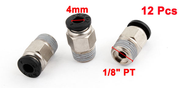 12pcs 9.5mm 1/8" PT Male Thread 4mm Pneumatic One Touch Push In Joint Fittings