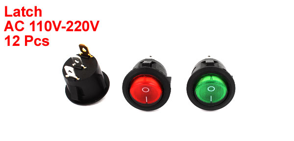 AC 125V 10ALamp Voltage AC 110V-220V Total Size(Each One) 2.3 x 2.1/0.9" x 0.8"(D*T) Mounting Size 2.3 x 2 x 1.6cm/0.9" x 0.8" x 0.6"(L*W*T) Color Black, Green, Red Material Plastic, Metal Total Weight 62g Package Content 12 x Green+Red Lamp Rocker Switch - Reviews