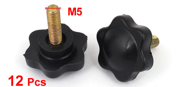 12pcs Black Plastic 25mm Head Diameter Star Clamping Knobs M5 x 16mm