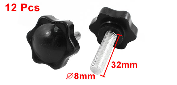 12Pcs Black Silver Tone M8 Thread 32mm Dia Star Head Clamping Knob