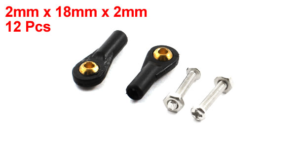 12Pcs DIY Model Simulation Car Boat Ball Joint Buckle 2X18X2mm Black w Screws