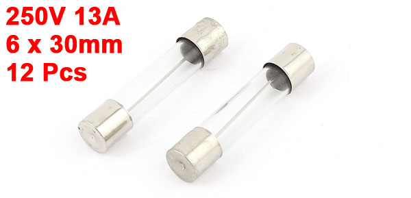12Pcs Quick Blow Fast Acting Cartridge Glass Tube Fuse 6x30mm 13Amp 250V