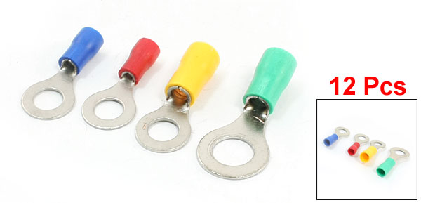 Product Name Pre Insulated Ring Terminal Model RV5.5-8/RV5.5-6/RV2-6/RV1.25-6 Design Ring Tongue Type Material PVC, Metal Color Silver Tone, Yellow, Green, Red, Blue Fit Cable Size 4-6mm(A.W.G 12-10) 1.5-2.5mm² (A.W.G 16-14) 0.5-1.5mm² (A.W.G 22-16) Ring Size Biggest: 8.2 x 14.5mm / 0.32" x 0.56" (Inside Dia*Outside Dia)