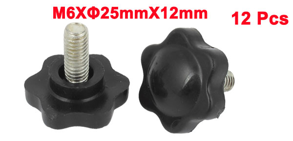12Pieces M6 Thread 12mm Long 25mm Diameter Star Head Clamping Knob