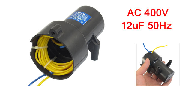 Details12uF 5% 50Hz AC 400V Motor Run Capacitor CBB60B for Washing Machine  Product Name Motor Capacitor Model CBB60B Material(External) Plastic Rated Capacitance 12uF Frequency 50Hz Tolerance +/-5% Rated Voltage AC 400V Size 9.1 x 6.3cm / 3.6" x 2.5" (L*D) Cable Length 180cm / 71" Main Color Black Weight 141g Package Content 1 x Motor Capacitor