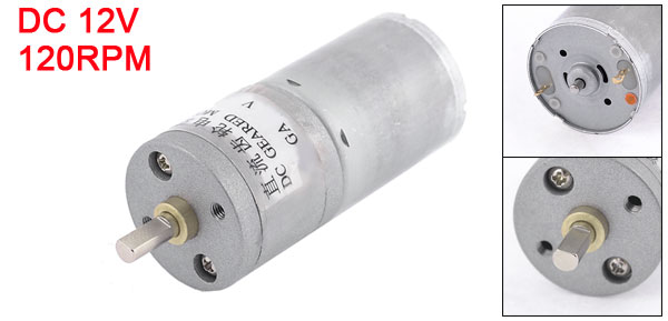 Product Name DC Geared Motor Rated Voltage DC 12V Output Speed 120RPM Shaft Diameter 4mm/ 0.16" Gearbox Part Size 25 x 23mm/ 1" x 0.9"(D*L) Motor Part Size 25 x 30mm/ 1" x 1.2"(D*L) Total Length(Approx) 65mm/ 2.6" Material Metal, Electronic Parts Color As Picture Shown Weight 73g Package Content 1 x DC Geared Motor - Reviews