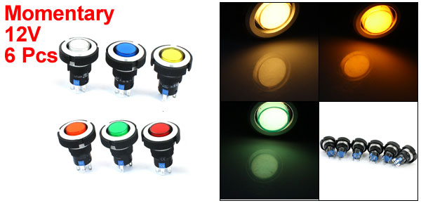 12V 22mm Panel Mount 6-Color Lamp SPDT Momentary Plastic Pushbutton Switch 6 Pcs