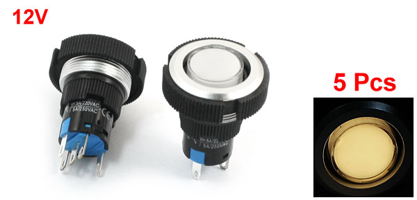 12V 22mm SPDT 5Pin Soldering Momentary Warm White Lamp Pushbutton Switch 5Pcs