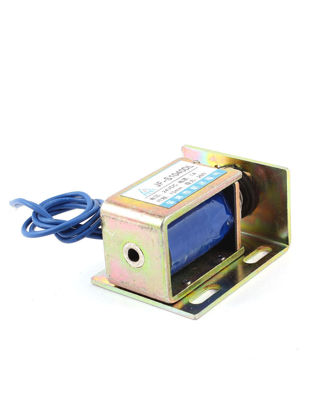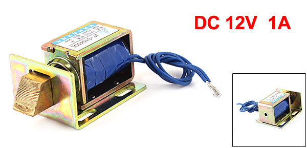 Product Name DC Solenoid Electromagnet Type JF-S1040DL Rated Voltage DC 12V Rated Current 1A Action Form Pull Force 2.5Kg Stroke 10mm Body Size(Approx) 6.8 x 4.2 x 3.2cm / 2.7" x 1.7" x 1.3" (L*W*H) Cable Length(Approx) 19cm /7.5" (Each) External Material Metal, Electronic Parts Main Color Copper Tone, Blue Total Weight 194g Package Content 1 x DC Solenoid Electromagnet - Reviews