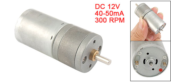 Product Name DC Geared Motor Rated Voltage DC 12V Rated Current 40-50mA ( no load ) Speed 300 RPM Shaft Diameter 4mm/ 0.16" Overall Size 25 x 68mm/ 1" x 2.68" (D*H) Main Color Silver Tone Material Metal Weight 91g Package 1 x DC Geared Motor - Reviews
