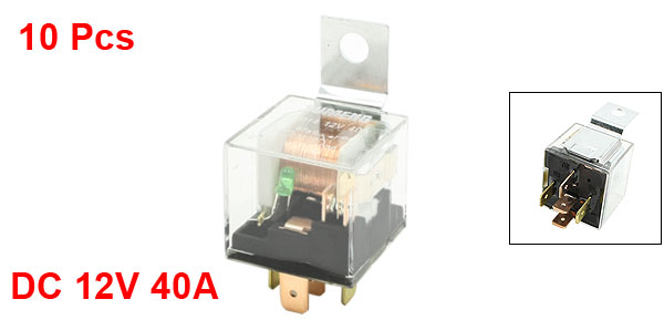 Product Name Car Relay Model JD1914 Rated Current(Max.) 40A Rated Voltage DC 12V Contact Type SPDT(NC, NO) Indicator Light Color Green Size(Included Metal Tab) 2.8 x 2.8 x 2.5cm/1.1" x 1.1" x 1" (L*W*H) Mounting Hole Size 6.5mm/0.26" Material(External) Plastic, Metal Color Black, Silver Tone Weight 374g Package Content 10 Pcs x Car Relay - Reviews