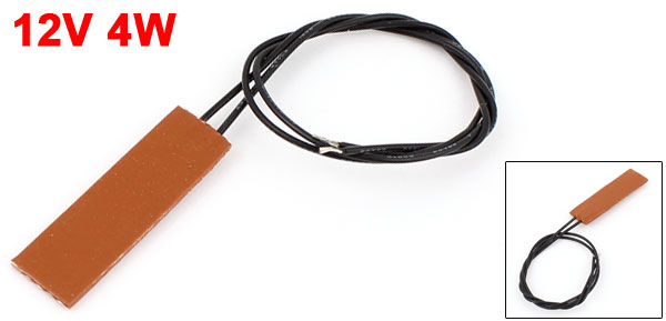Main Color Orange Red Country of Manufacture CHINA Power Density 0.1-1.2W/cm2 Power 4W Withstand Voltage Strength 1500V/5s Maximum Service Temperature 200C Material Silicone Rubber Working Voltage 12V Power Telorence +/-8% Net Weight 2g Insulation Resistance >=50Mohm Package Content 1 x Silicone Rubber Heater Insulation Material Heat Resistance 250C (Max.) Mechanical Pressure 100kg/cm2 Wires Length 20cm/ 8inches Size 35 x 10 x 1.5mm/ 1.4 x 0.4 x 0.06inches (L*W*H) - Reviews
