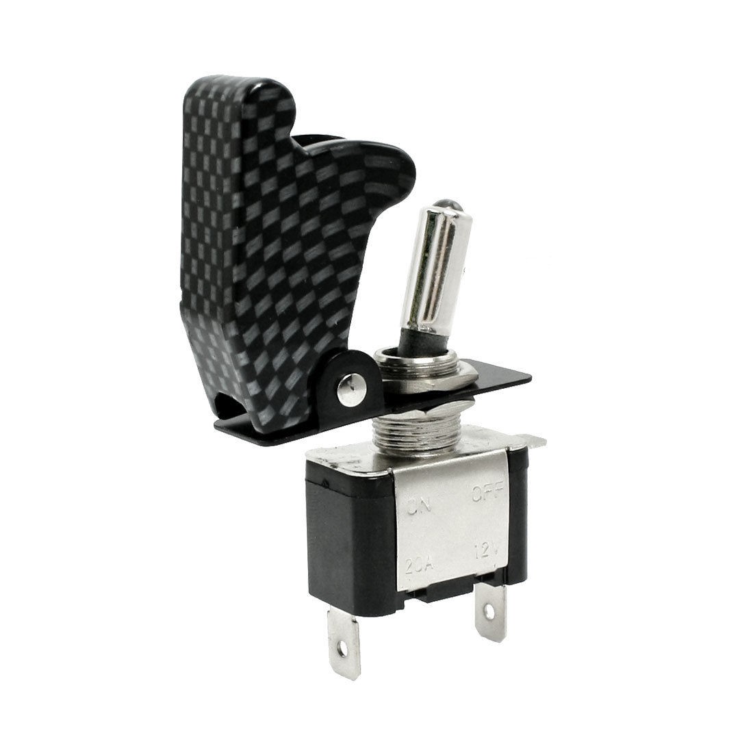 Product Name Toggle Switch Material Carbon Filber, Metal & Plastic Light Color Red Type SPST Voltage DC 12V Current 20A Size 67 x 47 x 17mm/ 2.6" x 1.9" x 0.67" (L*W*T) Color Black Weight 35g Package Content 1 x On/Off Toggle Switch - Reviews