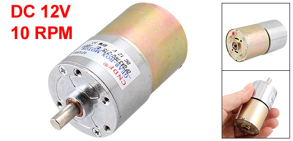 Details12V DC 10RPM 6mm Dia Shaft Electric Speed Reduction Gear Box Motor  Product Name Gear Box Motor Rated Voltage DC 12V Rated Speed 10 RPM Shaft Size 15 x 6mm/0.6" x 0.2"(L*D) Motor Body Size 63 x 40mm/ 2.5" x 1.57"(L*D) Total Length(Included Pin) 90mm/ 3.5" Material Metal, Electronic Parts Color Silver Tone, Copper Tone Weight 264g Package Content 1 x Gear Box Motor