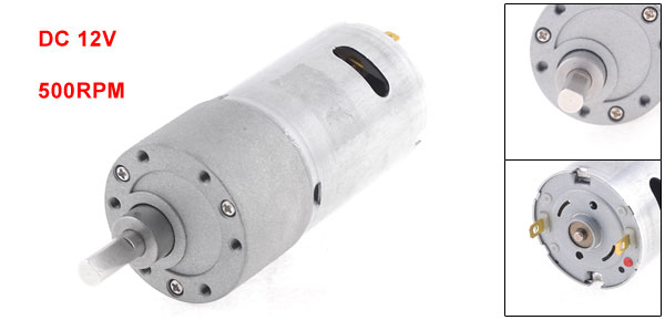 Product Name DC Geared Motor Rated Voltage DC 12V Output Speed 500RPM Shaft Diameter 6mm/ 0.24" Gearbox Part Size 37 x 24mm/ 1.5" x 1"(D*L) Motor Part Size 36 x 49mm/ 1.5" x 2"(D*L) Total Length(Approx) 93mm/ 3.6" Material Metal, Electronic Parts Color As Picture Shown Weight 252g Package Content 1 x DC Geared Motor - Reviews