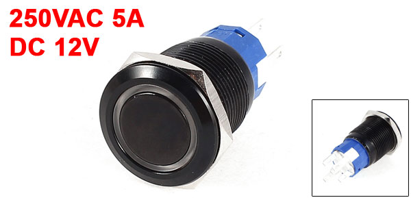 Item Name Push Button Switch Action Type Latching Type LED Type Ring-Illuminated LED Head Shape Flat Head Contact SPDT(1NO 1NC 1Com) Switch Rating 250VAC 5A Lamp Voltage DC 12V LED Color White Pin Number 5 Thread Diameter 19mm/0.75" Total Size 41 x 22mm/1.6" x 0.87" (L*Max.W) Material Stainless Steel, Plastic, Electric Parts Housing Color Silver Tone, Black Net Weight 8g Package Content 1 x Push Button Switch - Reviews