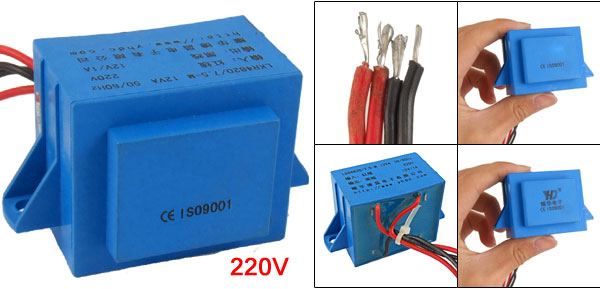 Product Name Encapsulated Transformer Model LKR4820/7.5-M Power 12VA, 50/60 Hz Input 220V Output 12V/1A Total Size(Approx.) 7.2 x 4.3 x 3.8cm/2.8'' x 1.7'' x 1.5'' (L*W*H) Cable Length 24cm/9.4'' Color Blue Weight 349g Package Content 1 x Encapsulated Transformer - Reviews