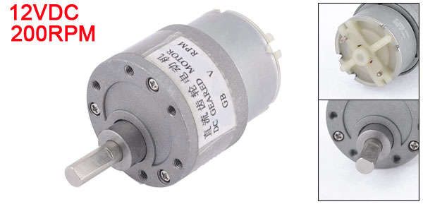 Product Name DC Geared Motor Rated Voltage DC 12V Output Speed 200RPM Shaft Diameter 6mm/ 0.24" Gearbox Part Size 37 x 24mm/ 1.5" x 1"(D*L) Motor Part Size 30 x 16mm/ 1.2" x 0.6"(D*L) Total Length(Approx) 60mm/ 2.4" Material Metal, Electronic Parts Color As Picture Shown Weight 184g Package Content 1 x DC Geared Motor - Reviews