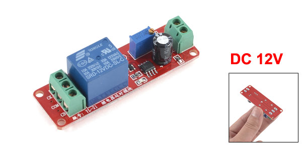 Product Name Delay Relay Actuation Module Type NC(Normal Closed) Coil 12V Load 10A AC 125V/250V, DC 30V/28V Size 65 x 20 x 18mm/ 2.6" x 0.8" x 0.7" (L*W*T) Color Blue, Red Weight 21g Package Content 1 x Delay Relay Module - Reviews