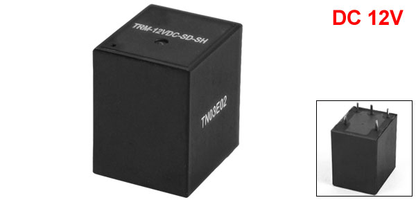 Details12VDC Rating Coil 1NO 1NC PCB Plug-in Type Mini Power Relay  Product Name Power Relay Model TRM-12VDC-SD-SH Coil Voltage DC 12V Load Capacity 10A 120VAC 12A 28VDC Action Type SPDT,1NO 1NC Pin Number 5 Size (Approx.) 17 x 14 x 19mm / 0.67" x 0.55" x 0.75“(L*W*T) Material Plastic, Metal Color Black Weight 10g Package Content 1 x Power Relay