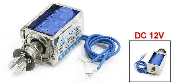 Product Name Open Frame Solenoid Rated Voltage DC 12V Current 400mA Action Form Pull Type Rated Stroke & Force 10mm, 25N