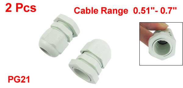 13-18mm Cables Waterproof PG21 White Plastic Glands Connectors 2 Pcs
