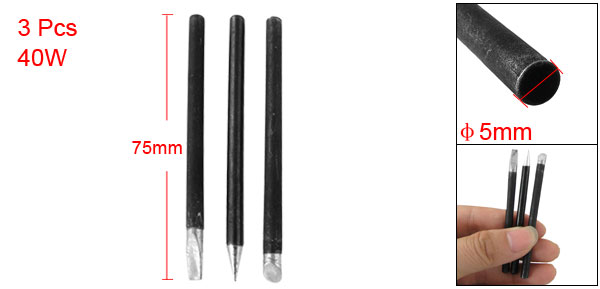 Product Name Soldering Iron Tip Material Metal Design Single Flat, Chisel, Conical Power 40W Total Length(Each) 75mm/3'' Shank Diameter 5mm/13/64" Conical Tip Diameter 1mm/3/64'' Single Flat Tip Diameter 5mm/13/64" Chisel Tip Width 4mm/5/32'' Color Black Weight 33g Package Content 3 x Soldering Iron Tip - Reviews