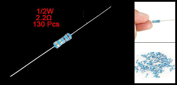 Product Name Resistors Type Metal Film Power Rating 1/2W Resistance Tolerance ± 5% Resistance 2.2Ω Body Size 8.5 x 3mm / 0.3" x 0.12"(L*D) Lead Diameter 0.3mm / 0.012" Total Length(Approx.) 56mm / 2.2" Color As Picture Show Weight 33g Package Content 130 Pcs x Metal Film Resistors - Reviews