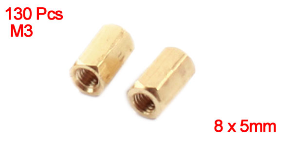 130 Pcs M3 x 8mm Female Thread Hex Head Brass Standoff Hexagonal Nut Spacer