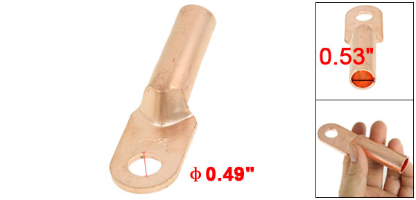Product Name Copper Terminals Type Ring Tongue Type Tube Hole Diameter 13.4 x 17mm / 0.53" x 0.67" (Inside Dia.*Outter Dia.) Crimping Lug Hole Diameter 12.5mm / 0.49" Size 92 x 21mm / 3.6" x 0.83" (L*Max.W) Color Copper Tone Material Copper Weight 75g Package 1 x Copper Terminals - Reviews