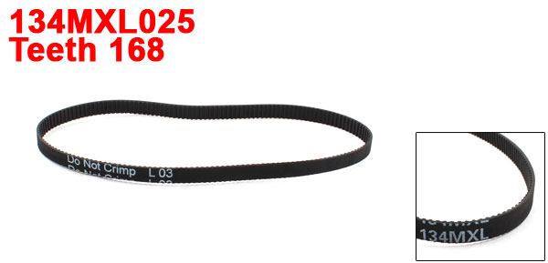 Product Name Timing Belt Model 134MXL025 Number of Teeth 168 Pitch 2.032mm / 0.08" Belt Width 6.4mm / 0.25"(1/4") Pitch Line Length 341.38mm/13.4" Material Rubber Color Black Weight 6g Package Content 1 x Timing Belt - Reviews