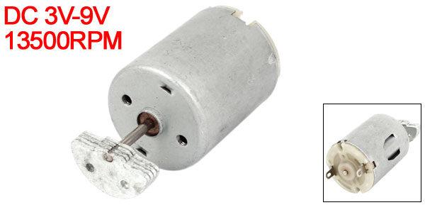 Details13500 RPM Magnetic Micro Massager Motor Gray DC 3V-9V  Product Name DC Micro Motor Rated Voltage DC 3V-9V Speed(no load) 13500RPM Body Size 25 x 30mm / 1" x 1.2" (D*H) Shaft Dia. 2mm/ 0.08" Total Length 45mm / 1.8" Main Color Gray Material Metal Weight 45g Package 1 x DC Micro Motor