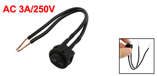 13.5x8mm Diameter AC 3A/250V 2 Wired SPST On/Off Black Button Rocker Switch