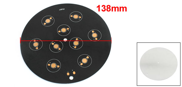 Product Name Aluminum PCB Circuit Board Fit for 9pcs x 1W/3W/5W LED Dia 138mm/5.4" Thickness 1.4mm/0.05" Mounted Hole Dia 5mm/0.2" Net Weight 50g Materials Aluminum Package Content 1 x Aluminum PCB Circuit Board - Reviews
