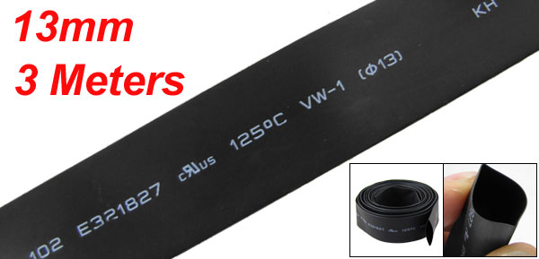 13mm Black Heat Shrinkable Tube Shrink Tubing 9.8FT