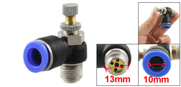 Product Name Speed Control Fitting Material Plastic, Metal Thread Diameter 13mm/0.51" Inner Diameter (Blue End) 10mm/ 0.39'' Each Total Size 45 x 41 x 20mm/ 1.8'' x 1.6'' x 0.78'' (L*W*T) Color Black, Blue Weight 33g Package Content 1 x Speed Control Fitting - Reviews