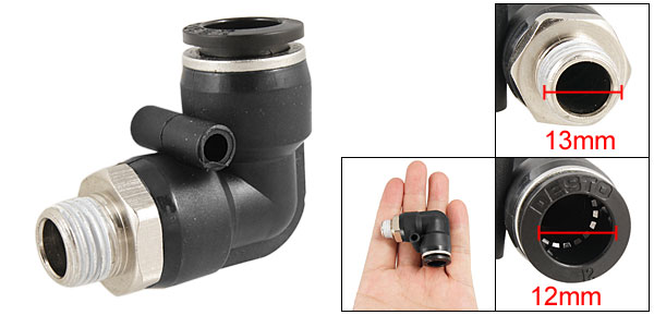 Product Name Pneumatic Fitting Model DPL12-02 Tube OD 12mm / 0.472" Thread OD 13mm / 0.512" Total Size(Approx) 47 x 21 x 39mm / 1.8" x 0.8" x 1.5"(L*W*H) External Material Plastic & Metal Color Black & Silver Tone Net Weight 32g Package Content 1 x Pneumatic Fitting - Reviews