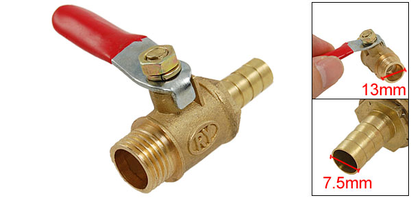 13mm Male Thread to 7.5mm Hose Tail Brass Ball Valve