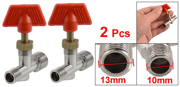 Product Name Air Compressor Manual Valve Material Plastic, Metal Main Color Red, Silver Tone Bigger Male Thread Dia. 13mm/ 0.51" Smaller Male Thread Dia. 10mm/ 0.38" Total Size 41 x 13 x 53mm/ 1.6" x 0.51" x 2.1" (L*W*H) Weight 52g Package Content 2 x Air Compressor Manual Valve - Reviews