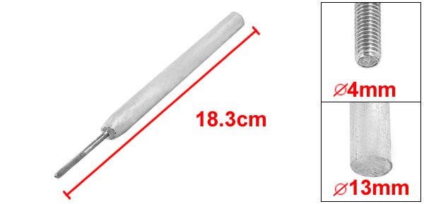 Product Name Extruded Magnesium Anode Rod Material Aluminum Fit for Waterboiler, Heatexchanger, Vapourater, Boiler Male Diameter 4mm/ 0.16" Thread Length 2cm/ 0.08" Shank Diameter 13mm/ 0.5" Shank Length 14.2cm/ 5.6" Total Length 18.3cm/ 7.2" Color Silver Tone Weight 40g Package Content 1 x Extruded Magnesium Anode Rod - Reviews