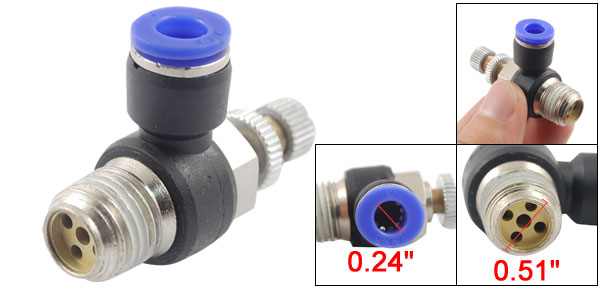 Product Name Pneumatic Speed Controller Inner Diameter (Blue End) 6mm / 0.24" Thread Outer Diameter 13mm / 0.51" (Approx) Total Size 45 x 32 x 17.5mm / 1.8" x 1.2" x 0.7" (L*W*T) Material Plastic, Metal Color Blue, Silver Tone Weight 30g Package Content 1 x Speed Controller - Reviews