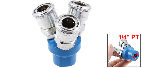 13mm to 13mm Quick Coupling 3 Way Pass Air Hose Coupler Silver Tone Blue