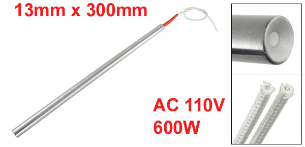 Product Name Cartridge Heater Material Stainless Steel, PVC, Nylon Rated Voltage AC 110V Power 600W Heater Size (Approx.) 13 x 300mm/0.5'' x 11.8'' (D * L)