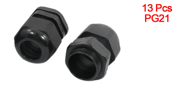 13pcs PG21 Black Waterproof Locknut Stuffing Cable Gland for 6-19mm Wire