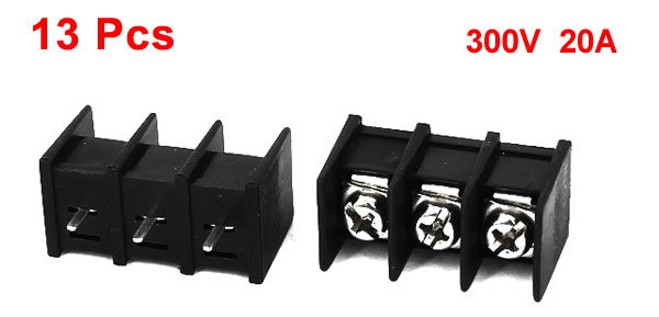 13Pcs ZB45 300V 20A 3 Poles 8mm Pitch Plastic Screw PCB Terminal Block Connector