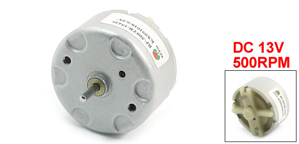 Product Name DC Motor Rated Voltage DC 13V Output Speed 500RPM Shaft Size 2 x 8mm/ 0.08" x 0.3"(D*L) Body Size 33 x 17mm/1.3" x 0.67"(D*L) Pin Number 2 Total Length(Approx.) 30mm/1.2" Material Metal, Electronic Parts Color Silver Tone Weight 42g Package Content 1 x DC Motor - Reviews