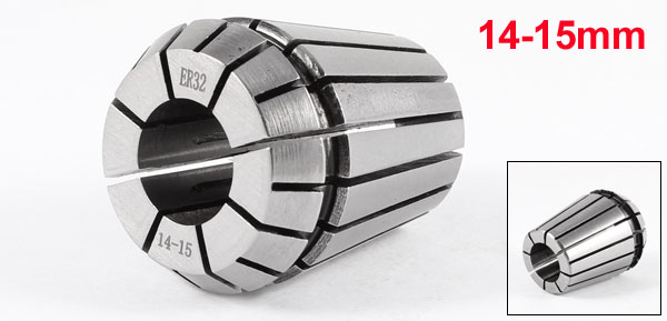 Product Name Spring Collet Model No. ER32 Clamping Range 14-15mm/ 0.55"-0.6" Clamping Diameter 15mm/ 0.6" Overall Size 40 x 35mm/ 1.6" x 1.4"(L*D) Material Stainless Steel Color Silver Tone Net Weight 121g Package Content 1 x Spring Collet - Reviews
